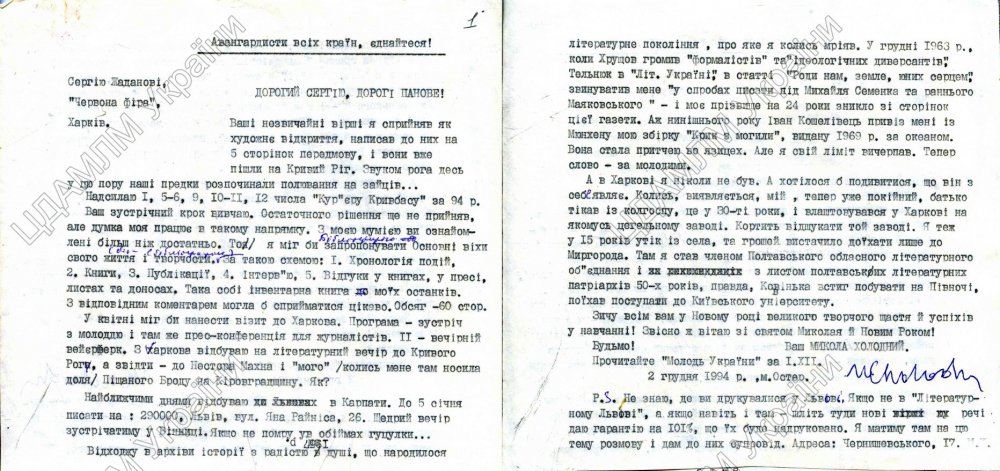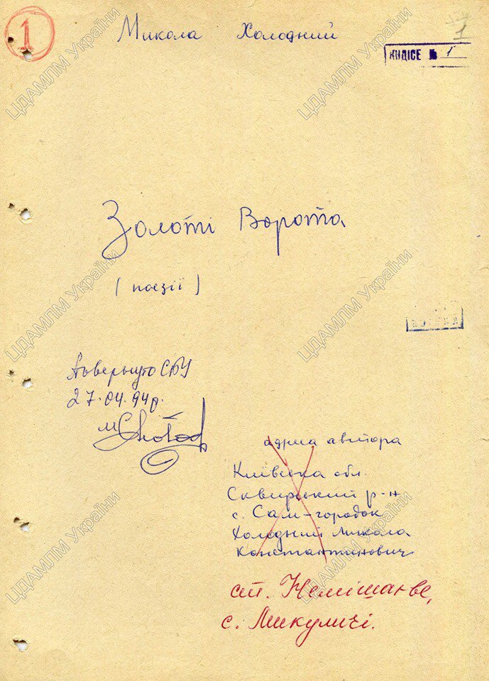 Опублікували документи з особового фонду Миколи Холодного, що зберігаються у Центральному державному архіві-музеї літератури та мистецтва України.