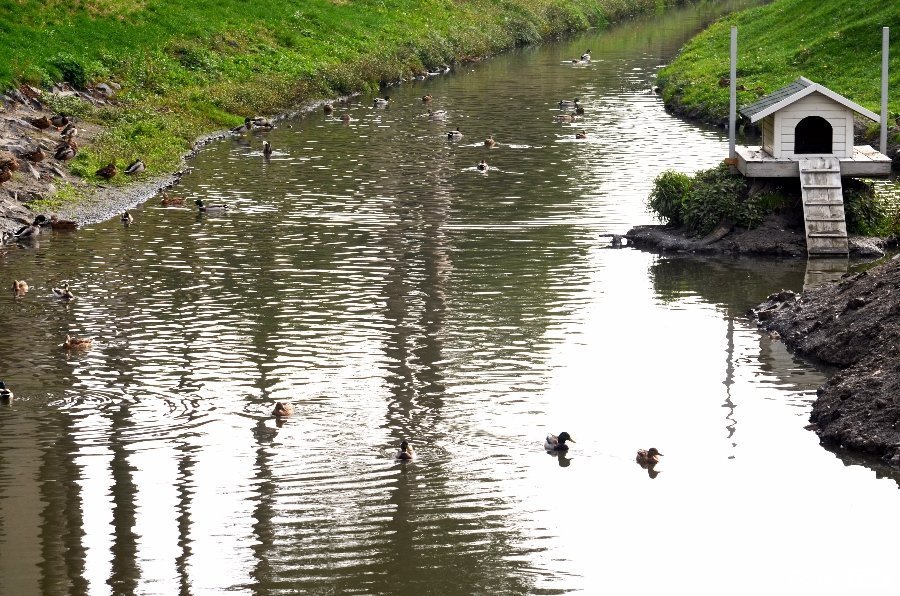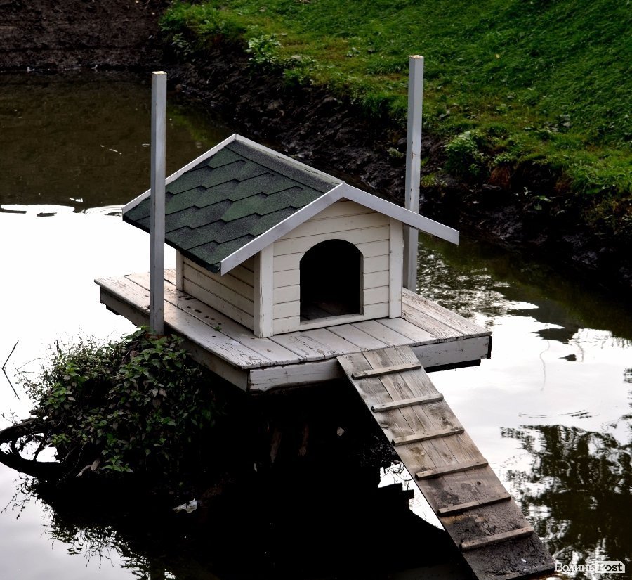 Ну і звичайно, що нашу Сапалаївку, яка у деяких місцях Луцька перетворилася мало не у канаву, врешті можна назвати водоймою. Русло річки очевидно, що штучно розширили. На воді побудували хатинки для качок.