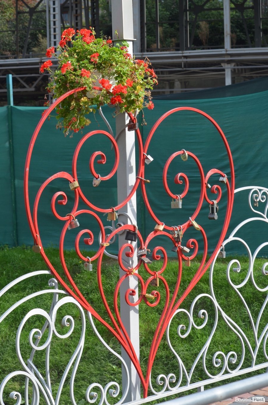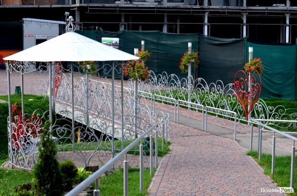 Через річку – міст і не просто міст, а «міст закоханих», на якому пари замикають на замки «вічне кохання». Поруч - альтанка.