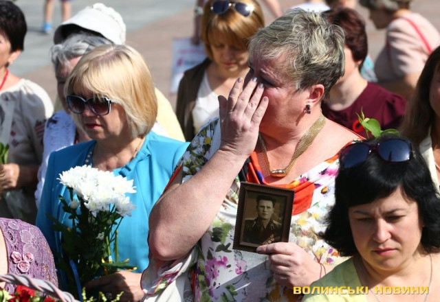 Війна нагадує про себе тисячами обелісків та братських могил. Вони – святиня нашої пам’яті. Вшановуючи загиблих на фронтах Другої світової війни, керівництво області та міста, ветерани та пересічні лучани квіти поклали до центральної стели меморіального комплексу, пам’ятного знаку невідомому солдату та інших пам’ятників та обелісків.