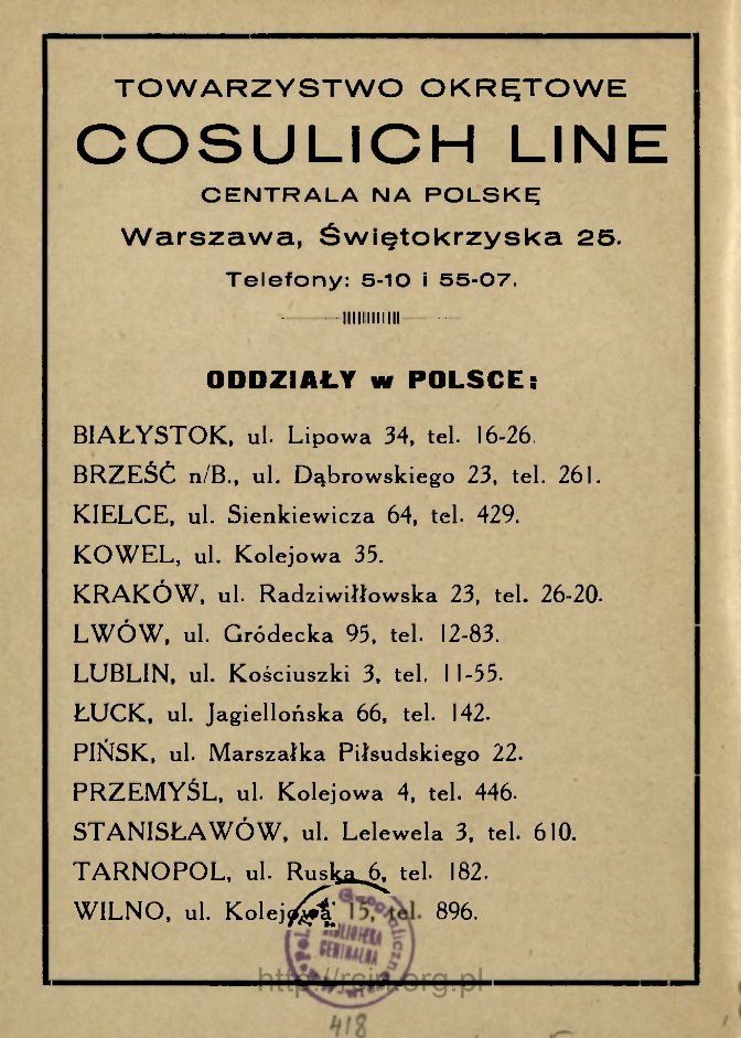 Адреси консультаційних центрів по питаннях еміграції до Бразилії, 1930-ті роки.
