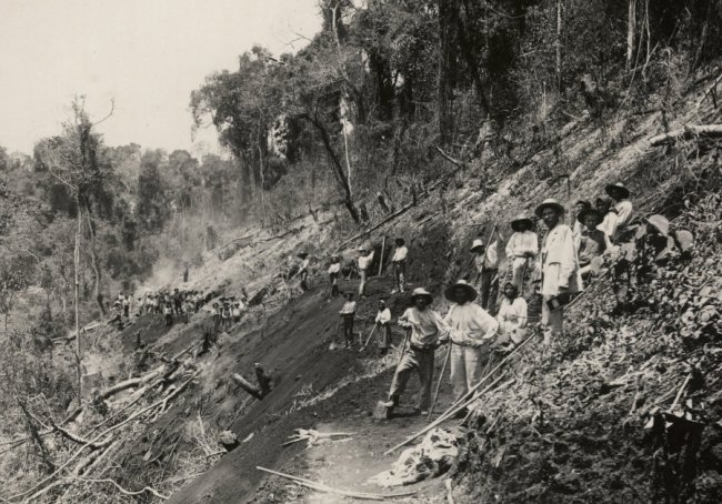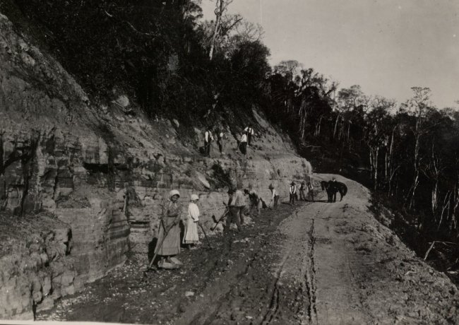 Будівництво емігрантами дороги до своїх поселень, 1930-ті роки.