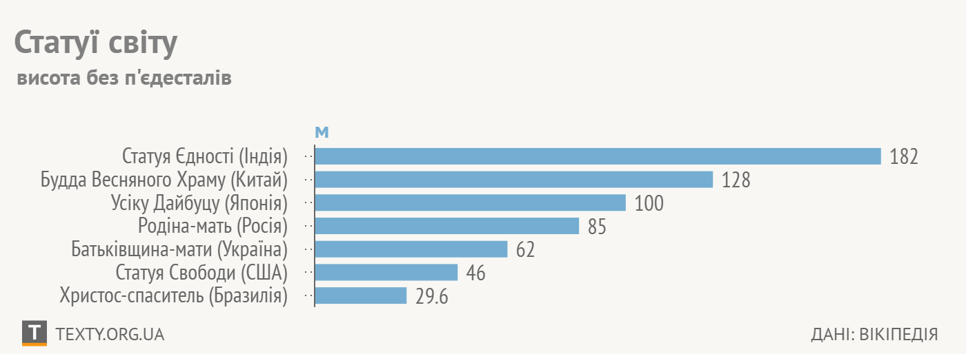 Зараз найвищою статуєю в світі є Будда Весняного Храму в Китаї — її висота становить 128 м.