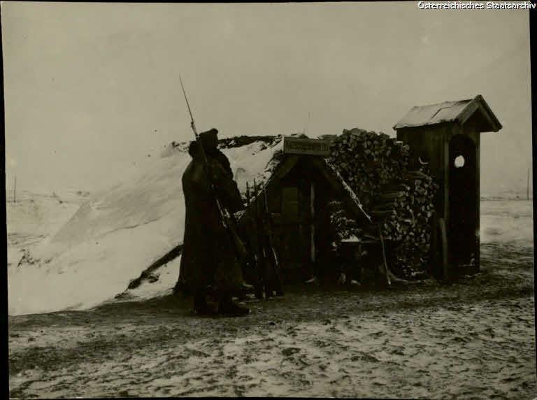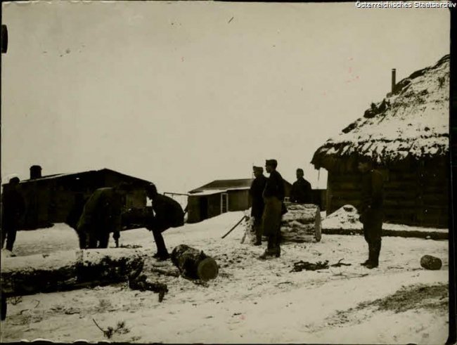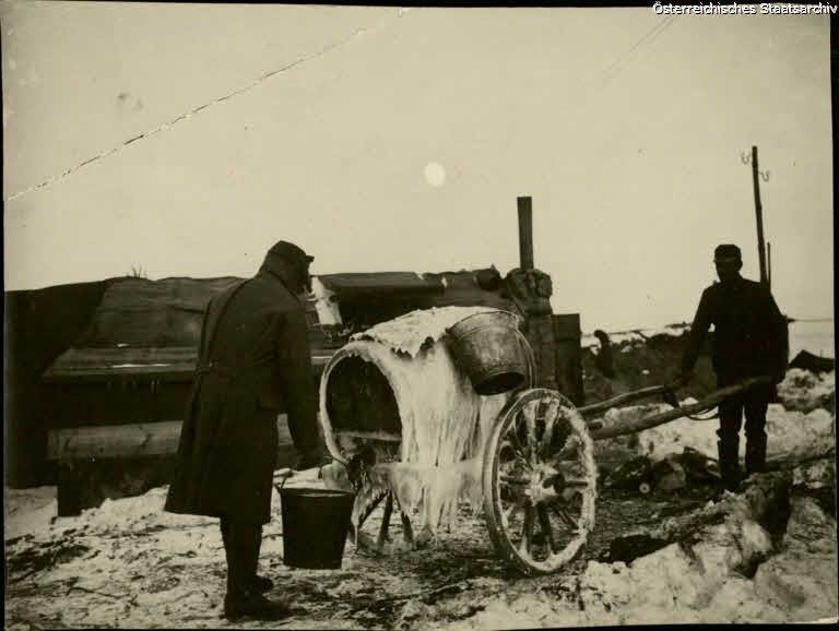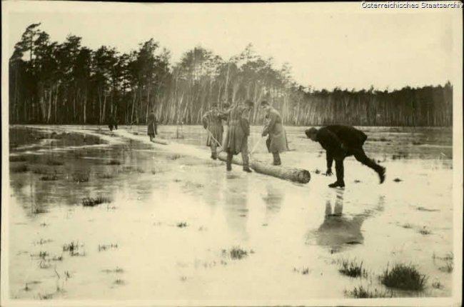 На останніх світлинах фотопідбірки натомість можемо побачити як у вільний від військових дій, розважались на льоду різними іграми солдати австрійської армії.