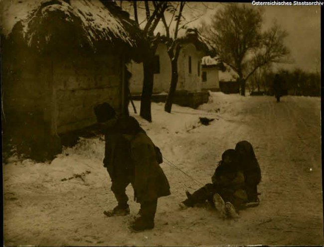 Сьогодні хочемо поділитись із зимовими світлинами, які датовані 1916-1917 роками. На фото можемо побачити як місцевих мешканців волинських міст та сіл, так і побут солдат австрійської армії. Фото були зроблені невідомими військовими фотографами. Досить цікавим та рідкісним фото є перше, адже на ньому можемо розгледіти дітей, які не дивлячись на війну, яка тривала не перший рік, були раді снігу і розважались, катаючись на санках.