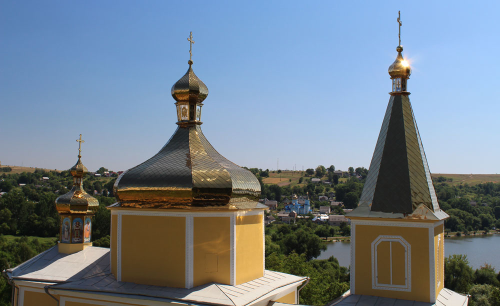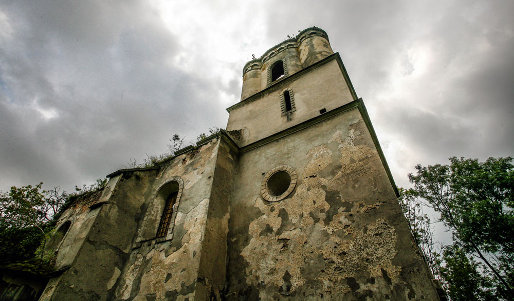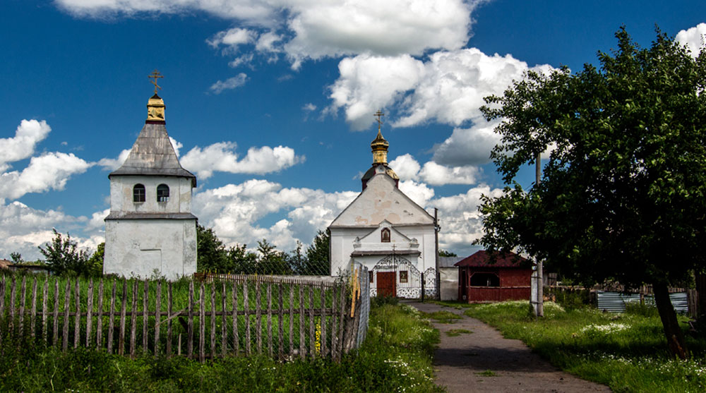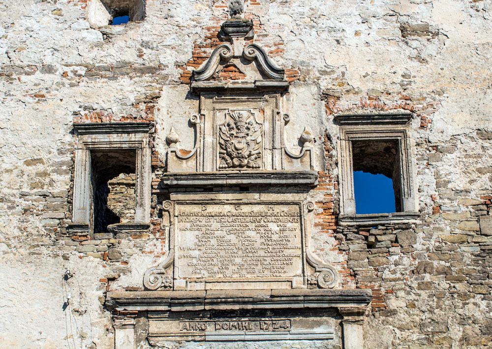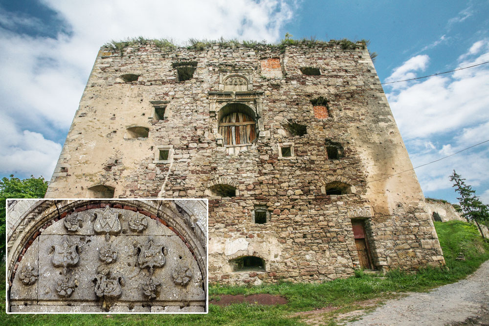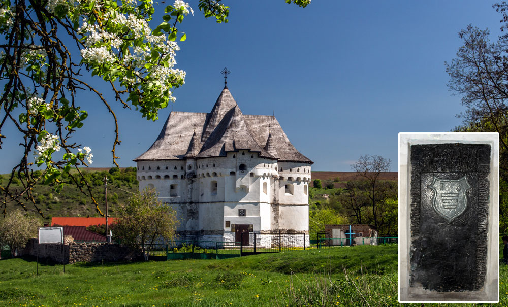 Про церкву Святої Покрови (1476), що в Сутківцях, багато розповідати не будемо — це найзнаменитіший з оборонних храмів України (його фото навіть до шкільних підручників потрапило), тож про нього написано більше ніж достатньо. Кому цікаві подробиці — тисніть на лінк вище. В межах нашої теми лише зазначимо, що тут маємо нечастий випадок, коли шляхетського герба можна побачити в православному храмі.
