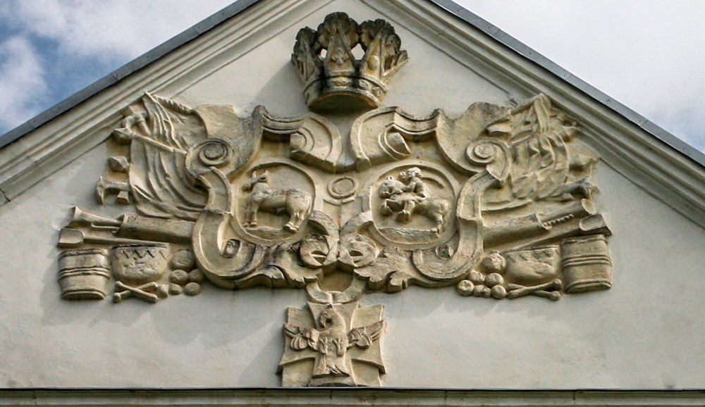 Шляхетські герби — досить традиційний елемент декору замкової, палацової та сакральної архітектури. Чому герби прикрашають замкові брами та фасади палаців, зрозуміло — так власники гучно заявляли світові: «Це — моє!». З храмами ситуація трішки інша: там зазвичай розміщували герби ктиторів (донаторів) — людей, які внесли значні кошти на їх зведення, ремонт, оздоблення тощо.