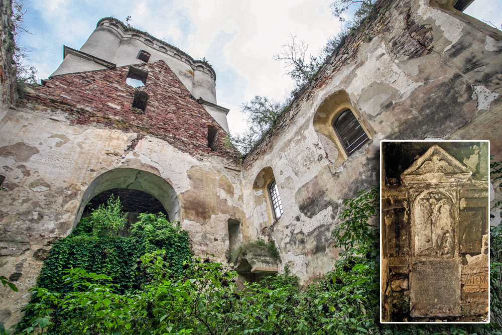 — Пробив той дядько в надгробку отвір і запхав до нього голову — подивитися, що там, — розповідає о. Володимир. — Та й застряг! Так і стояв всю ніч навкарачки під гербом, аж поки будівельники до роботи не вийшли. Ледь його потім виколупали. А за плитою, як виявилося, порожня ніша була.