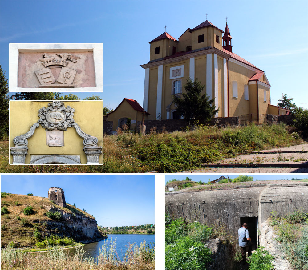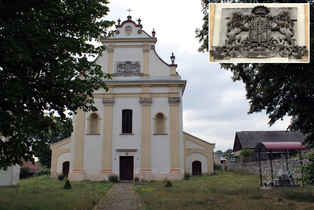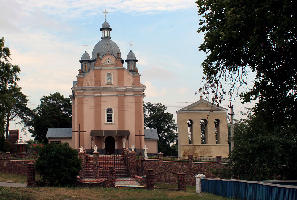 Костел освятили 1842 року, але є версія, що споруда давніша і належить чи не до XVIII століття. Нам він цікавий величезним графським гербом фундаторів костелу, родини Лянцкоронських, яким прикрашено фасад. За розмірами це чи не найбільший «архітектурний герб» в Україні. До того ж, він цілком може претендувати на звання найкрасивішого.