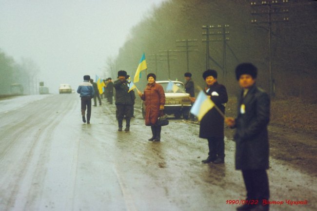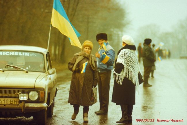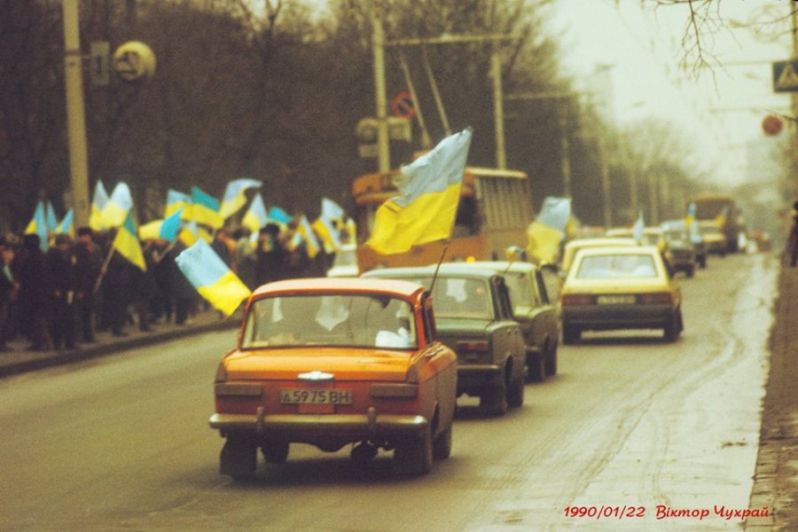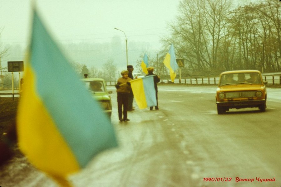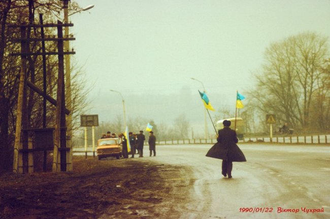 Ланцюг Злуки 29 років тому на світлинах луцького фотографа 22 січня 2019, в 12:26 Луцький фотограф Віктор Чухрай опублікував світлини святкування Акту Злуки у 1990 році. Фото він опублікував на своїй сторінці у Facebook. «Пам'яті подій, у яких ми брали участь 29 років тому та трасі Київ-Львів, ланцюг злуки», – йдеться у дописі.