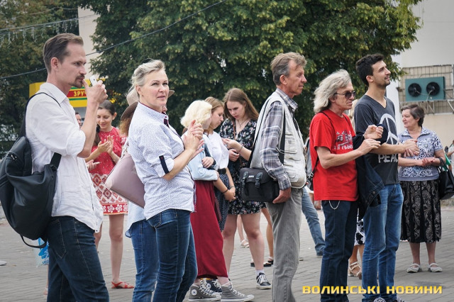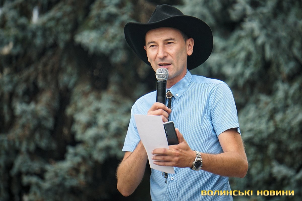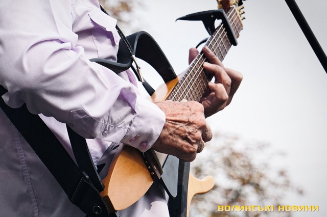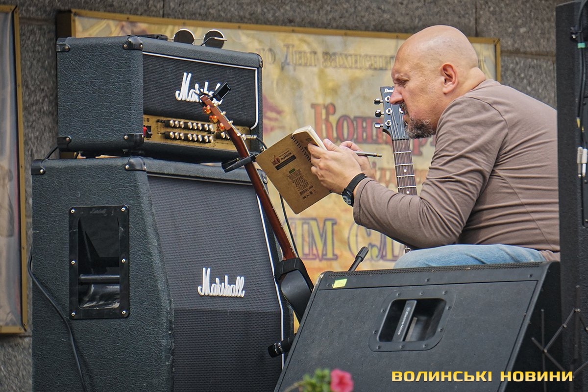 За мить з імпровізованої сцени фестивалю біля Волинського академічного облмуздрамтеатру імені Тараса Шевченка він не тільки співав, а й розповідав історії створення пісень, про символічну для нього фігурку ельфа, який грає на скрипці, що її показав згодом присутнім...