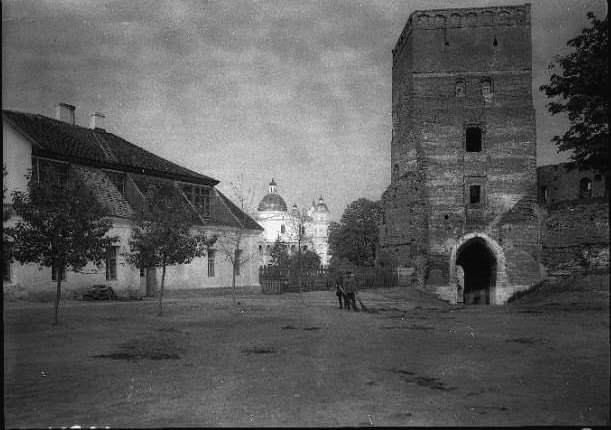 На ній зафільмували Луцький замок без частини муру, тому добре видно костел.