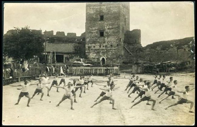 Окрім того, у замку раніше тренувалися спортивні пожежники. Фото датоване 1939 роком.