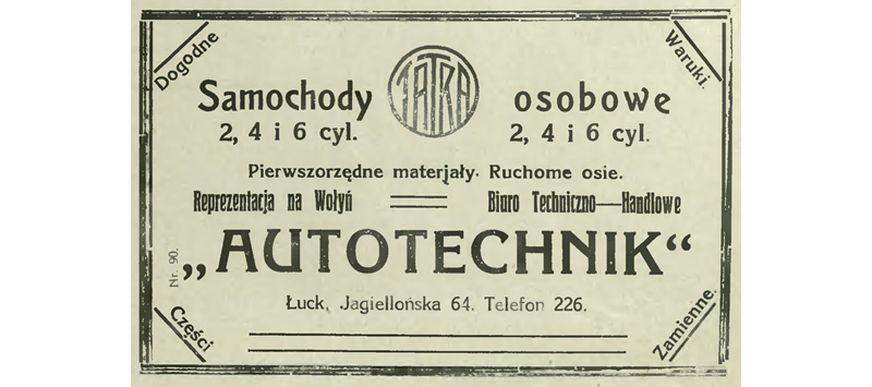 Волинське представництво Autotechnik займалося продажем легкових автомобілів Tatra та Chevrolet, але ймовірно, асортимент був ширший, адже загалом в міжвоєнний час по Луцьку їздив значно розмаїтіший склад популярних тоді марок авто. Це була перша в Луцьку локація, де можна було придбати авто, з гаражами і майстернею поруч. Фактично, можна говорити про перший в Луцьку автосалон. На жаль, про діяльність Autotechnik відомо поки дуже мало.