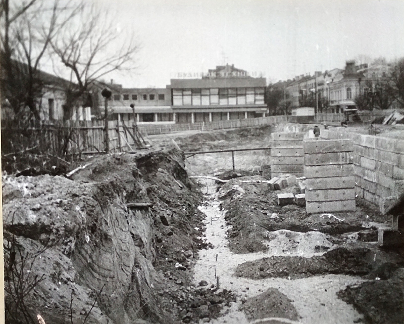 На місці знесених колишніх будинків Гути починається нове будівництво, кінець 1970-х