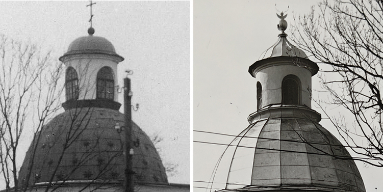 Купол братської церкви у 1926 та 1989 роках. Змінилися форма маківки та ширина вікон світлового ліхтаря
