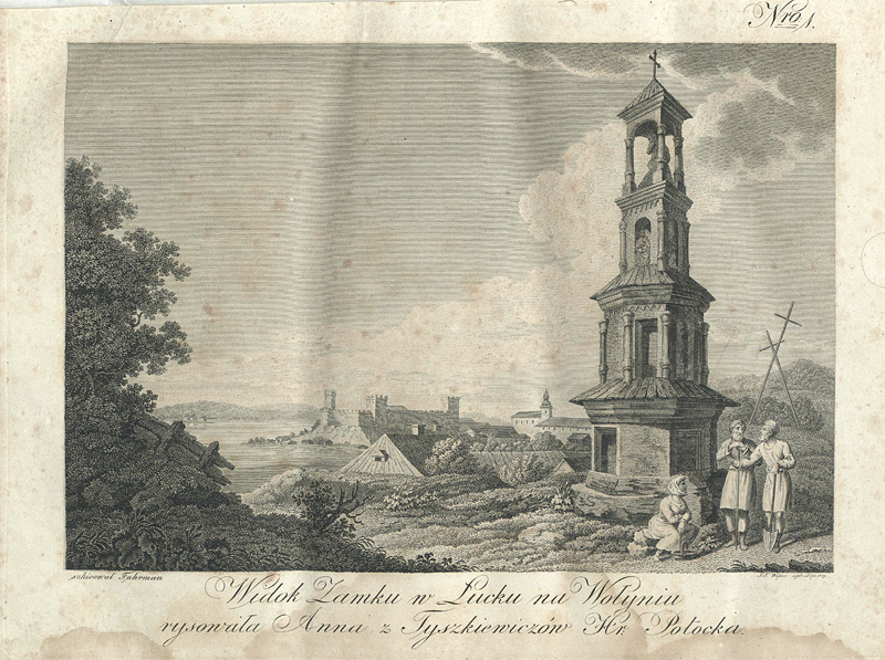 Цікава гравюра з панорамою міста з боку Градної гори (тепер тут вулиця Градний узвіз) поміщена у виданні 1821 року Едварда Рачинського. Він був польським політиком і магнатом, захоплювався науками, подорожами. У 1814 році здійснив подорож на розкопки Трої. Їхав він через Луцьк, Одесу, Константинополь. Разом із Рачинським мандрував художник Людвік Фурман, який робив замальовки відвіданих місцевостей.