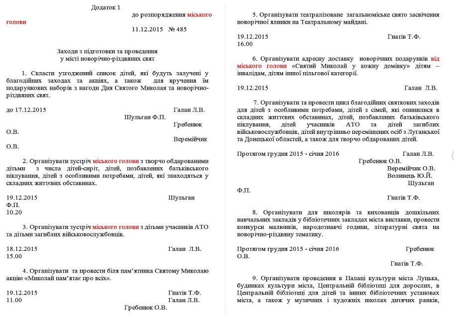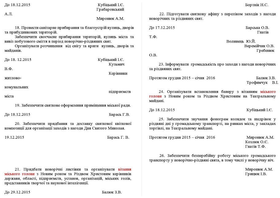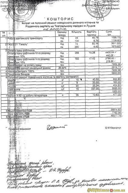 За сприяння «Комітету правозахисту та боротьби з корупцією» вдалося отримати копії кошторисів витрат і розпоряджень стосовно влаштування новорічних свят в Луцьку.