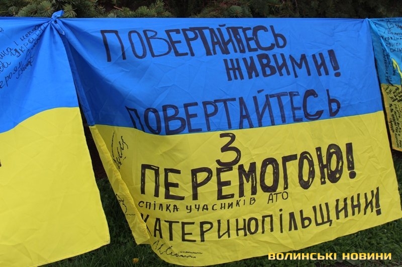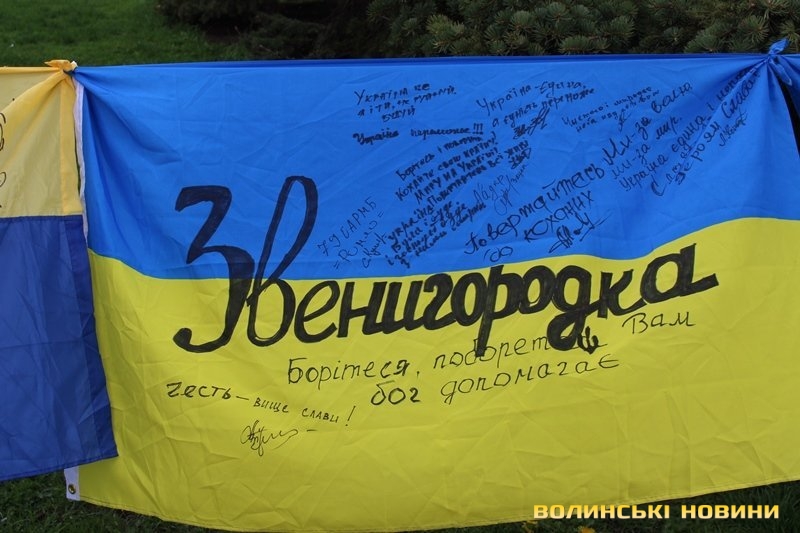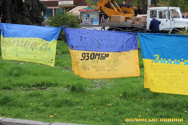 Особливу увагу привернув до себе лучанин, який прискіпливо розглядав прапори, ніби шукаючи щось на них. Микола Томашевський, як назвався чоловік, намагався знайти серед цього різноманіття стягів прапор своєї рідної 30-ої бригади, бо й сам чоловік лише декілька днів тому повернувся з передової. Прапора 30-ки, на жаль, не виявилося, проте чоловік побачив знамена сусідніх бригад, 92 і 79, бійці яких воювали поруч з ним.