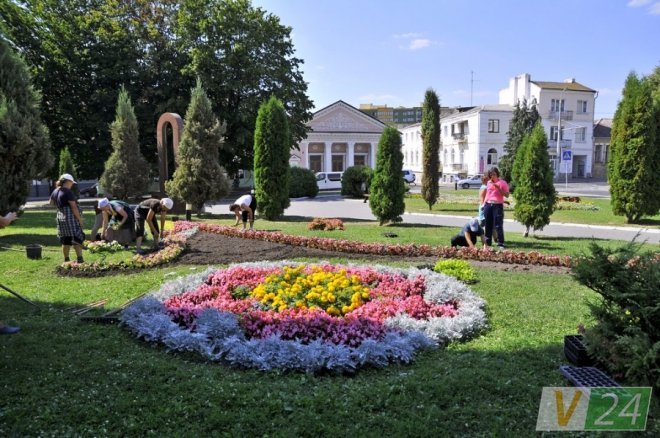«Перед пам’ятником Грушевському висадимо червону бегонію із зеленим та бронзовим листям. А на клумбах-трапеціях плануємо із квітів зробити таку геометрію, як на фасаді будівлі», – розповіла Алла Можелюк.
