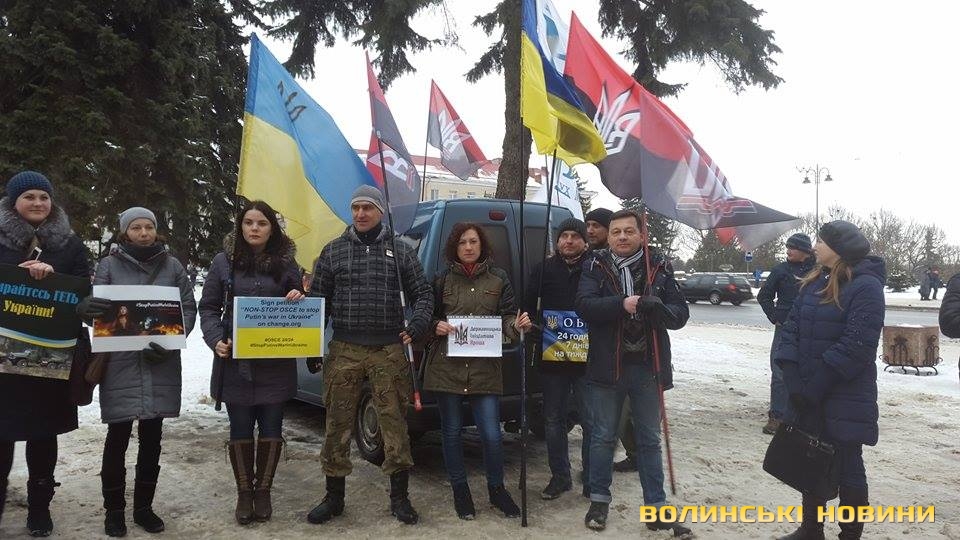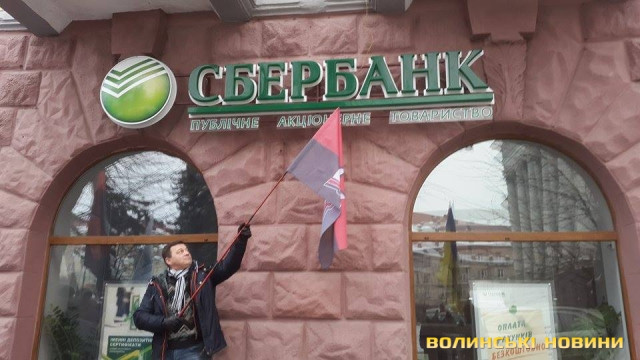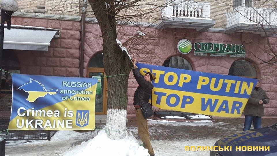 У Луцьку міжнародну акцію протесту підтримали актвісти, волонтери та просто патріоти. Розпочали акцію біля приміщення "Сбербанк Росії", вимагаючи закриття усього російського бізнесу на Україні і відділення банку - зокрема.