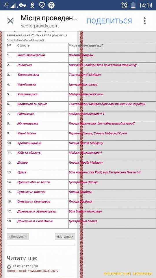 В Україні на протест проти "Путінської окупації" вийдуть в 18 містах.