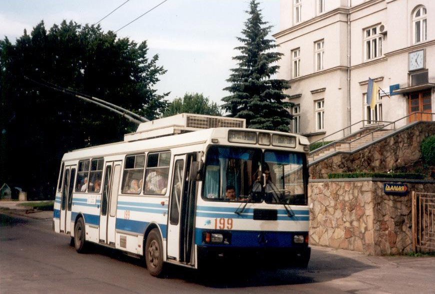 Новенький 199 брав участь в урочистому відкритті тролейбусної лінії на Гаразджу 23 серпня 1997 р.